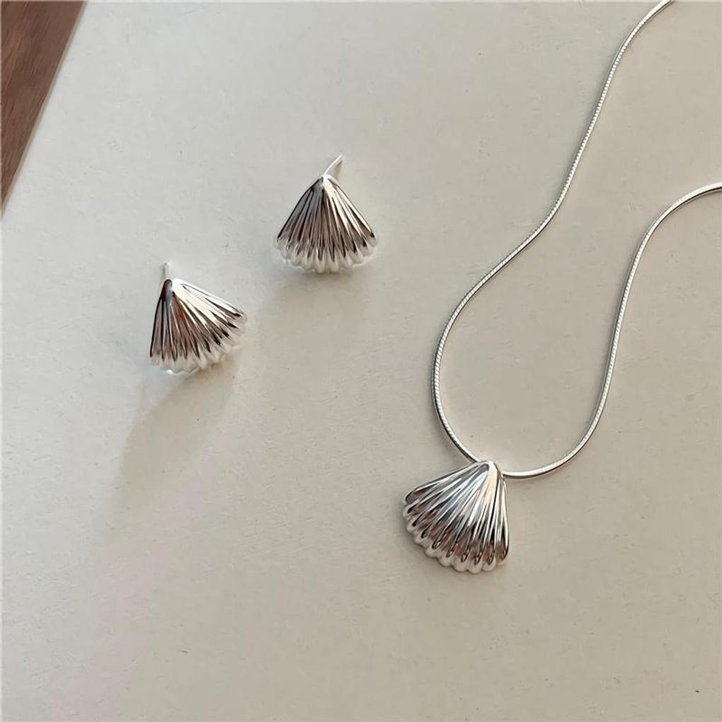 Women's 925 Silver Mother-of-Pearl Shell Simple Earrings and Necklace