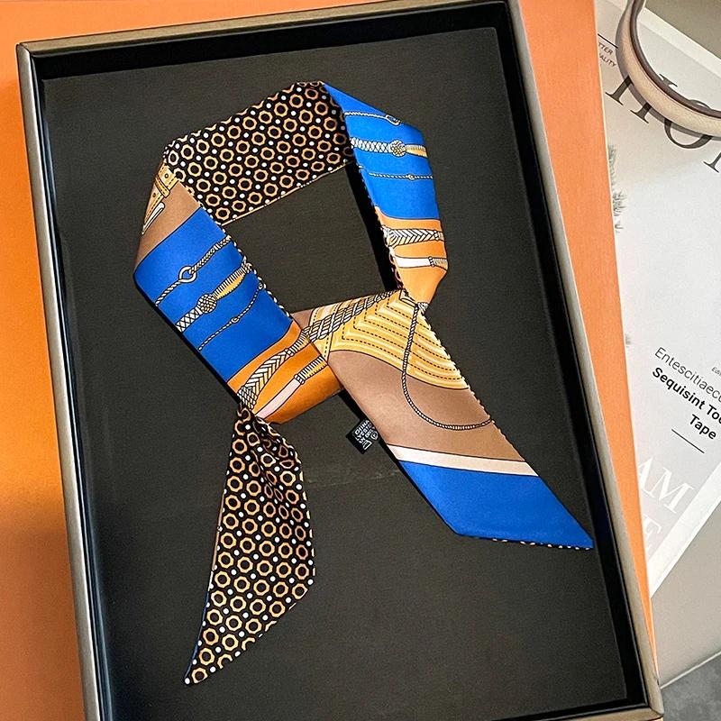 Women Silk Scarf Printed Series Hairband Neck Tie Foulard Beach Shawl Versatile Lady'S Fashion Accessory Binding Bag Ribbon