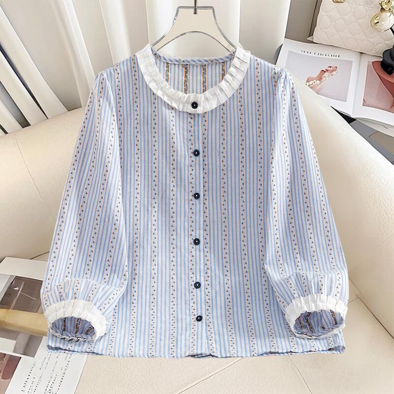 Women's Ruffle Trim Striped Blouse