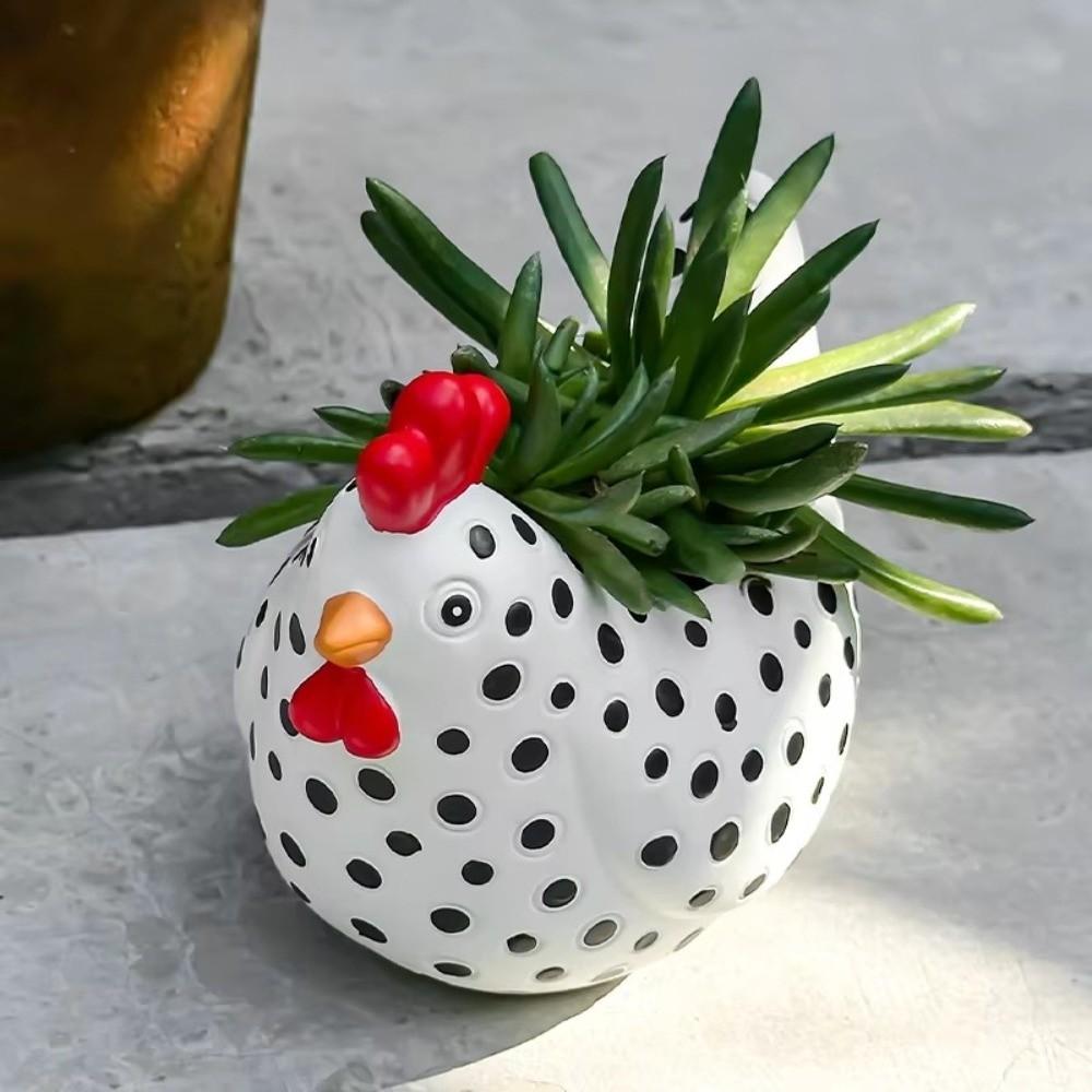 Vaso de Flor Frango Pintado em Forma de Frango Desenho Animado Resina Pequeno Recipiente para Plantas Decoração de Jardim Vaso para Suculentas Casa