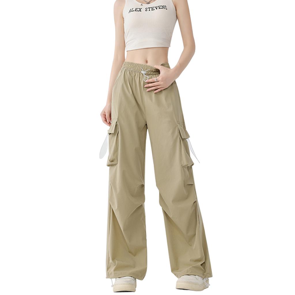 Wide-legged Paratrooper Work Pants for Women In Hot Season High Waist Mountaineering Sports Pants Loose Retro Casual Sprint Paper Bag Pants