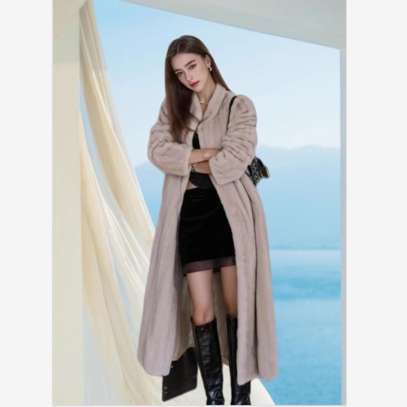 Women's imitation mink coat velvet lapel long imitation mink fur coat winter casual warm trench coat