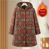 Jaqueta de Algodão Quente de Inverno Engrossada Feminina Tamanho Plus Xadrez com Capuz Casaco de Comprimento Médio