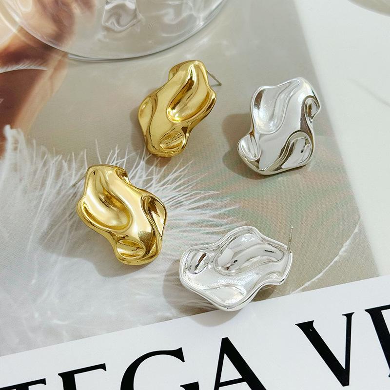 Geometric Pleated Design 925 Silver Stud Earrings - Retro Niche High-End Style for Women