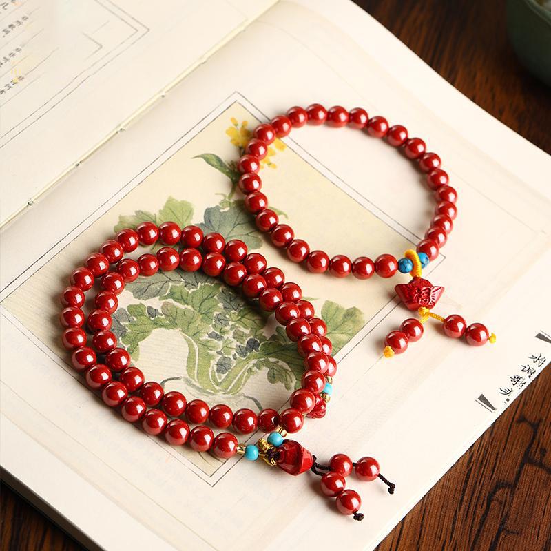 Natural Cinnabar Bracelet with Imperial Yuanbao Pendant - Single or Double Loop for Men and Women