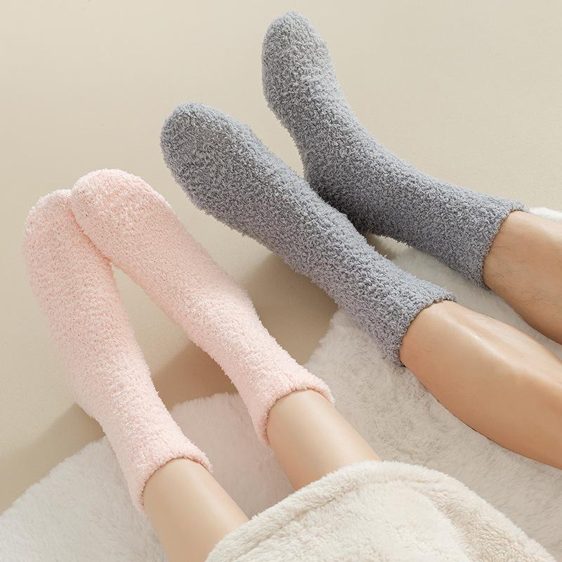 Solid-color Coral Fleece Socks - Children's Warm Sleep Socks with Added Padding and Thickened Mid-calf Floor Socks