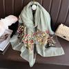 Elegant Soft Thin Luxury Silk Scarf Flower Embroidery Foulard Women Hijab Shawls Large Wraps Shiny Lace Scarf Female
