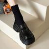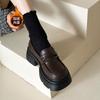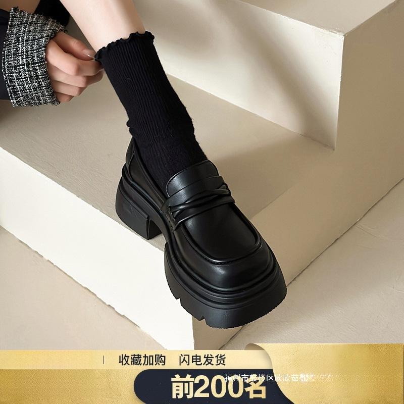 Platform loafers women's shoes 2026 new popular heightening women's shoes British style small leather shoes women's black single shoes