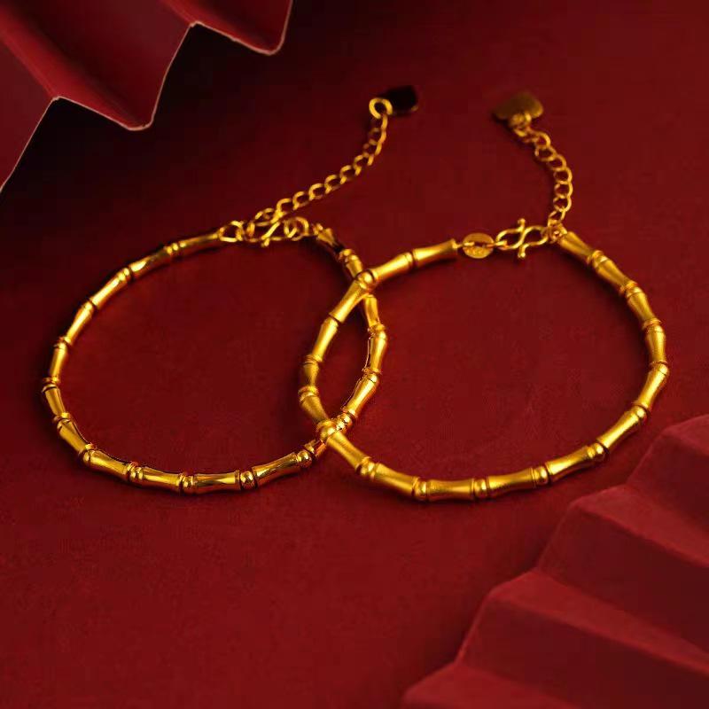 Pulseira de Bambu com Contas Douradas Sand: Joias Elegantes para Mulheres