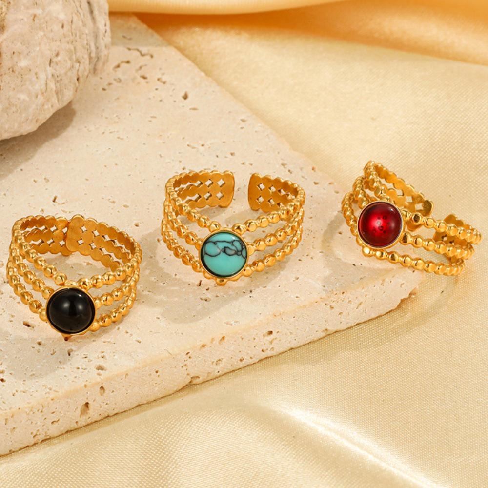 Bohemian Turquoise Adjustable Stainless Steel Ring - Geometric, Non-Fading