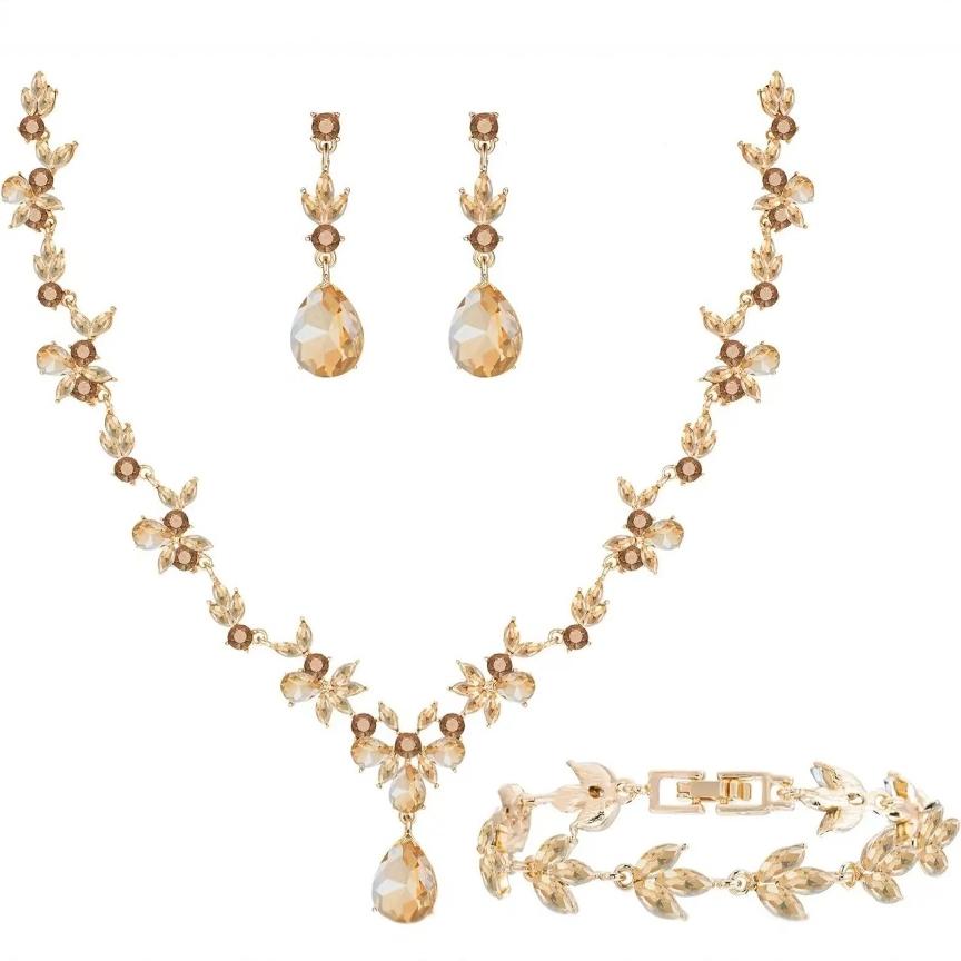 Luxury Crystal Water Drop Bridal Wedding Dress Set Necklace Earrings Bracelet Three-Piece Set