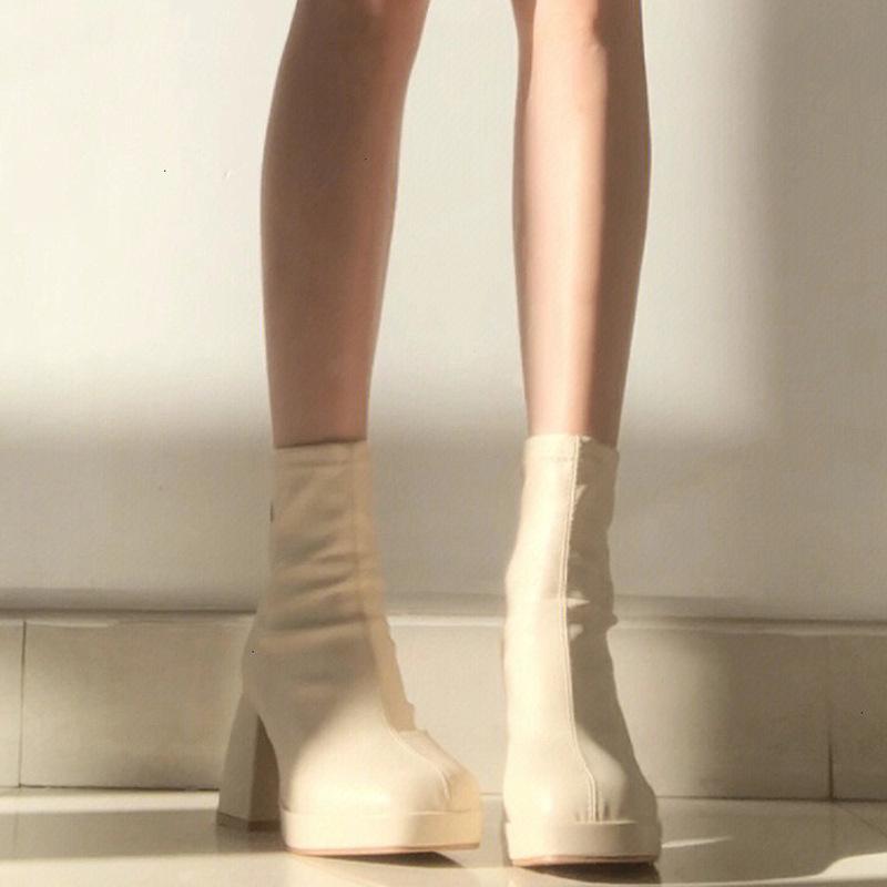 Foreign style small short boots women's waterproof table high heels small height increase soft white boots platform shoes