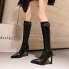 Super High Heel Boots Pointed Thin Heel Rivet Martin Boots Knight Boots High Boots Beige Stretch Boots Skinny Boots