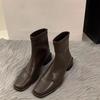High Heel Square Head Skinny Boots Small Short Boots 2025 French Small Ankle Boots Brown Martin Boots