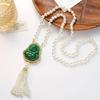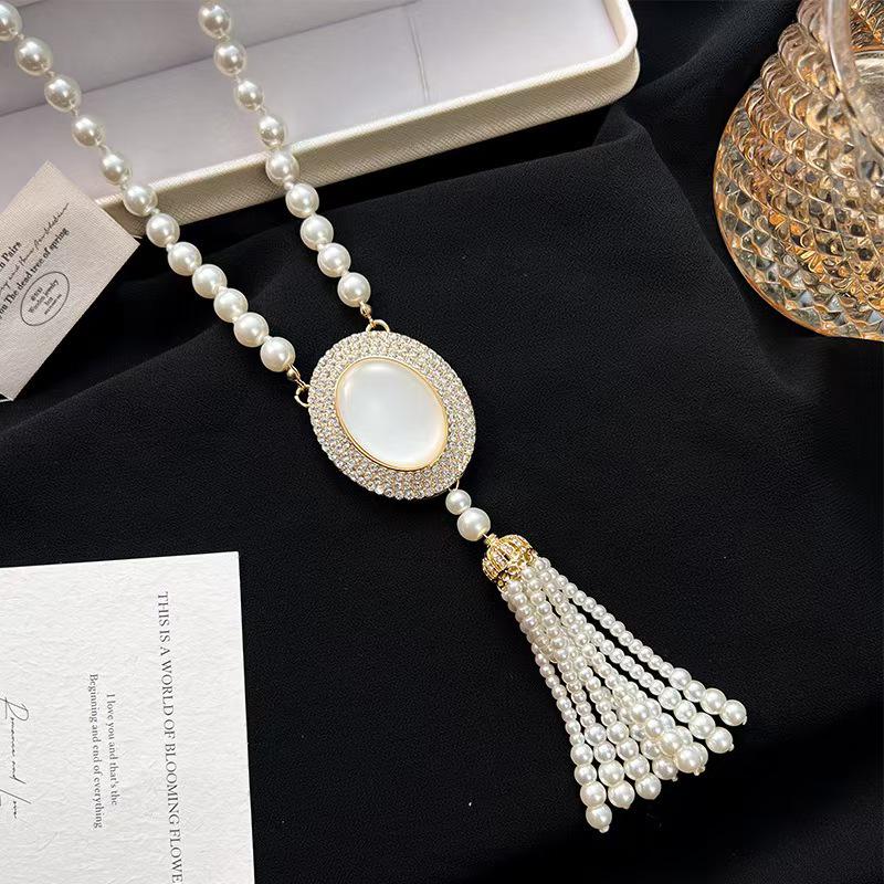 New Luxury Oval Cat's Eye Stone Pearl Sweater Necklace Pendant