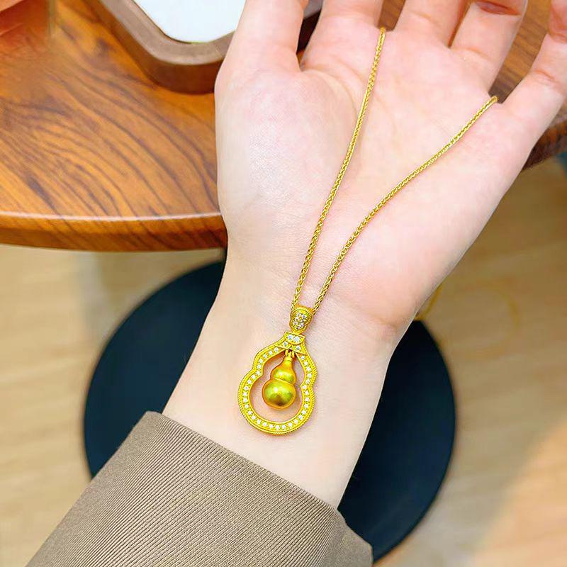 Gold Gourd Lively Pendant & Sand Gold Earrings Set for Women