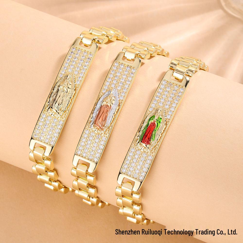 Pulseira Minimalista Virgem Maria Zircônia - Versátil, Luxuosa, Inspirada no Retro Corrente de Relógio para Amigo