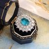 Premium Retro Blue Imitation Natural Paraiba Light Luxury Light Blue Zircon Jewelry Temperament Ring