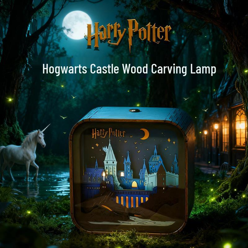 Luminária de Noite em Madeira Esculpida Harry Potter Hogwarts – Presente Criativo de Aniversário e Ornamento de Mesa para Crianças