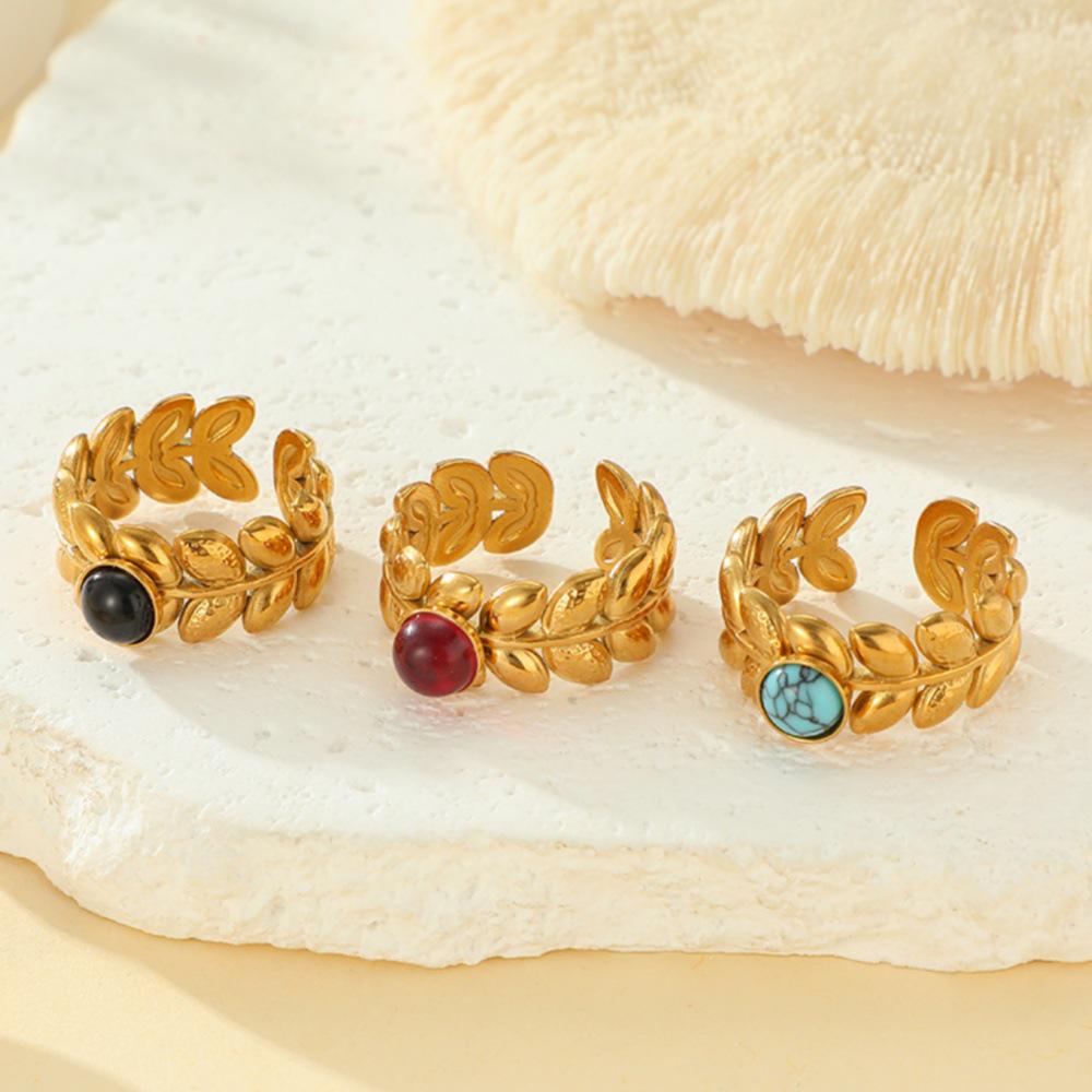 Adjustable Turquoise-Leaf Stainless Steel Ring - Non-Fading, Fashionable Jewelry for Women