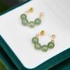 Natural Hetian Jade Green Dangle Earrings - New Chinese Style Studs for Women, National Style Qingyu Design