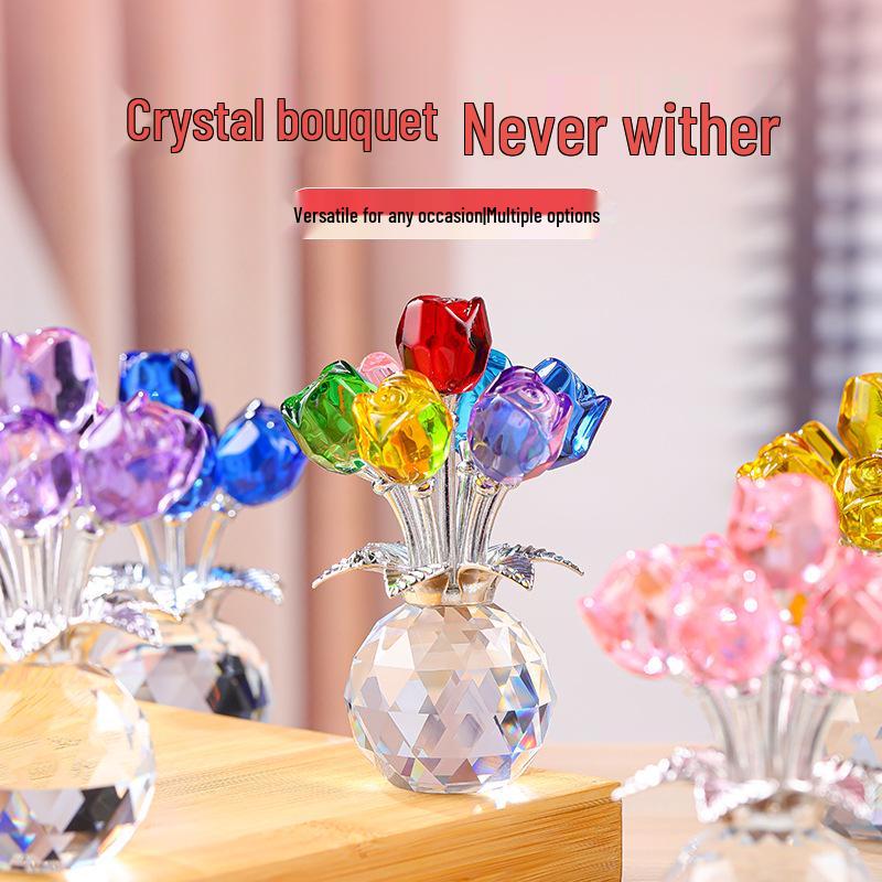 Elegant Crystal Rose Eternal Bloom Ornament - Perfect for Qixi or Valentine's Day Gifts, Living Room Decor, and Handcrafted Art.