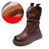 Mid-calf Leather Boots with Pleats, Stylish Women's New Shoes, Fashionable Boots