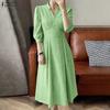 ZANZEA Women Casual V-Neck Solid Color 3/4 Sleeve Retro Dress