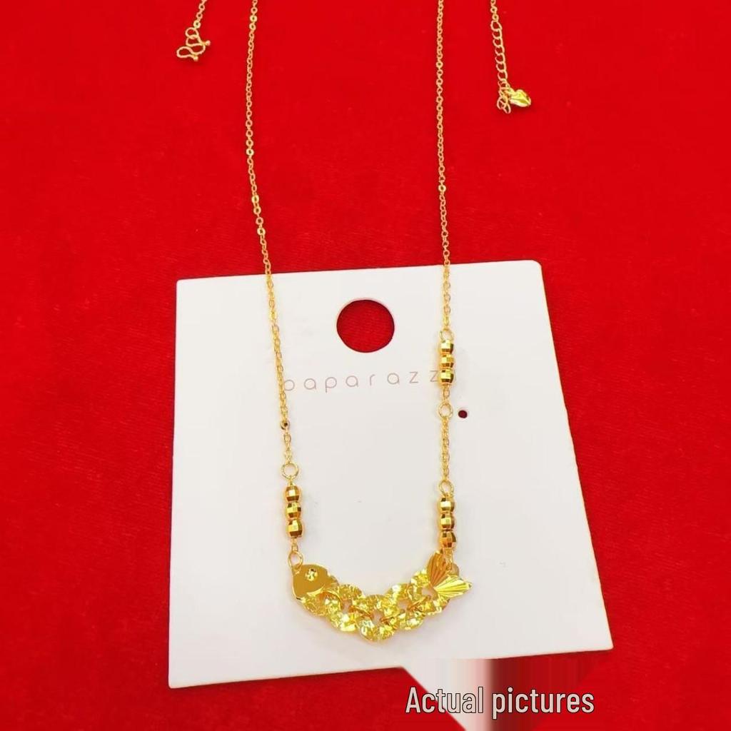 Vietnam Sand Gold Koi Necklace: Five Emperor Coins, Crushed Ice Design - Elegant Clavicle Chain, Perfect for Qixi Birthday Gift