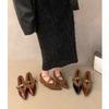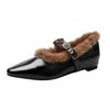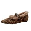 Sapatos de cabelo pontudos usam novos sapatos Mary Jane de estampa de leopardo com gorro de veludo sapatos de algodão