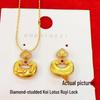 Colar com Pingente Cadeado Ruyi de Lótus Dourado - Corrente para Suéter Estilo Chinês Retro