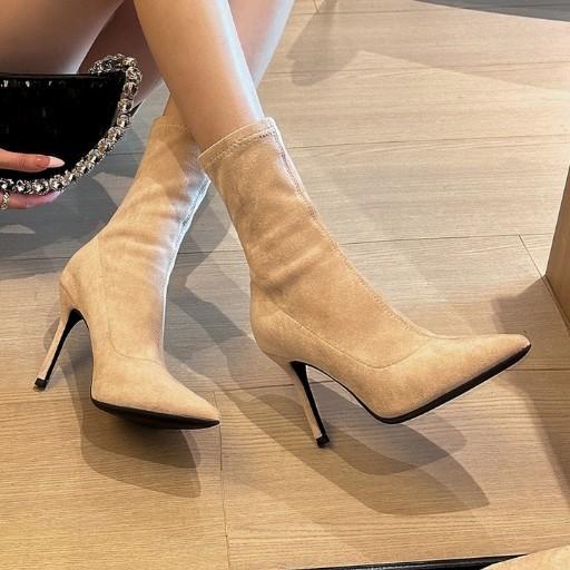 Pointed toe versatile temperament elegant fashion thin boots high heel short boots women's suede fine heel elastic