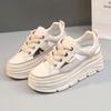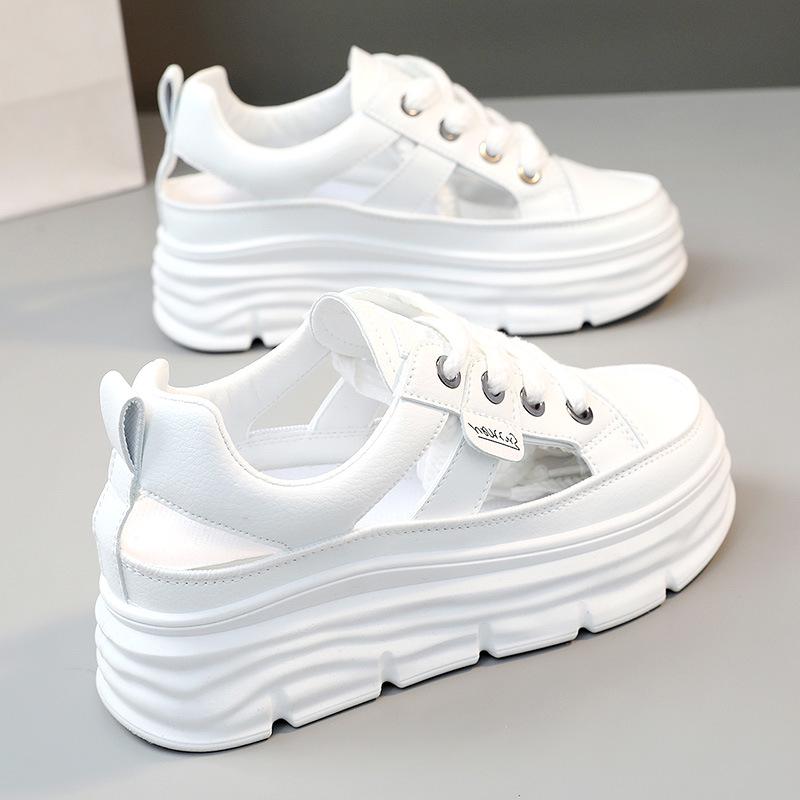 Sandálias Femininas de Verão 2023 Vazadas que Aumentam a Altura – Sapatos Casuais Versáteis Brancos Respiráveis com Solado Grosso