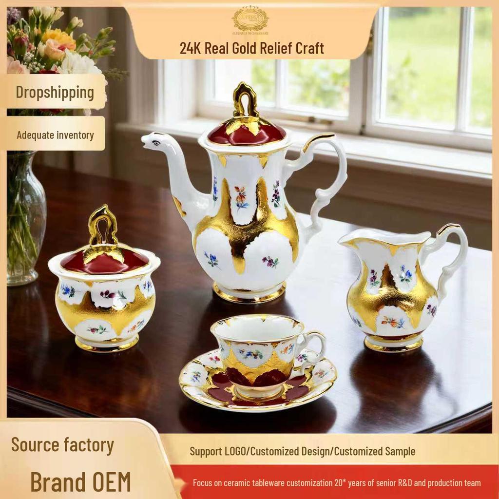 Karosa European Relief Gold Coffee Cup Set - Luxury Gold-Trimmed High-Temperature Bone China Cups & Saucers in Gift Box