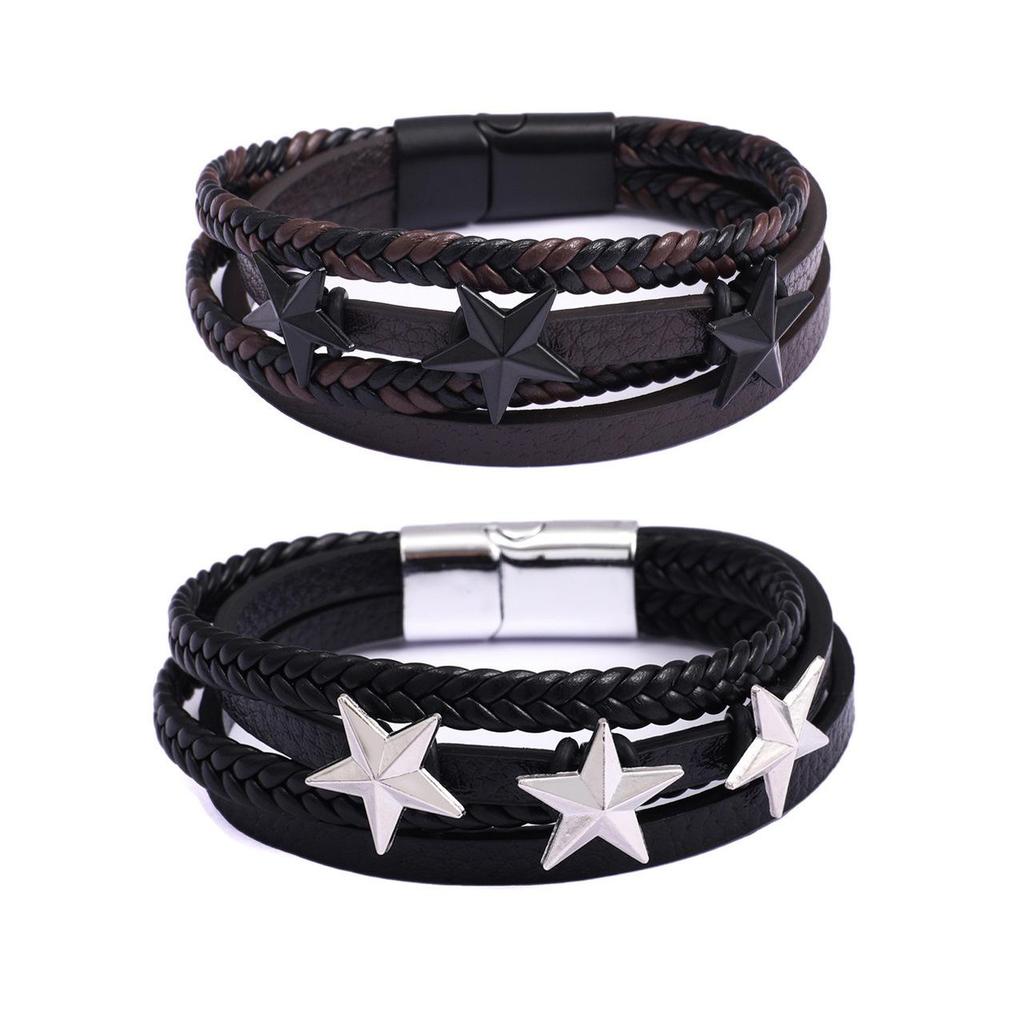 Pulseira de Couro Trançado Multicamadas Versátil Masculina com Design de Pentagrama