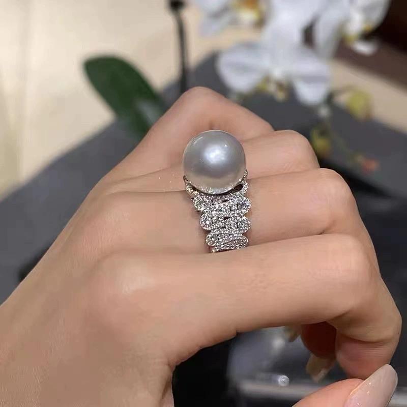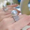 Gorgeous White Pearl Finger Ring Female Wedding Party Full Diamond Zircon Luxury Sterling Silver Accessories