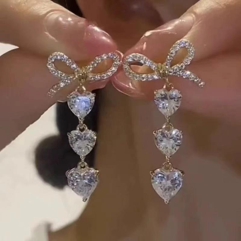 Brincos de Tarraxa Longos com Franjas e Zircônia em Forma de Laço para Mulheres Moda Personalizada Acessório Diário Festa Aniversário Presente