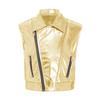 Colete jaqueta metálico brilhante unissex para crianças, com gola virada, sem mangas, peça de outer wear