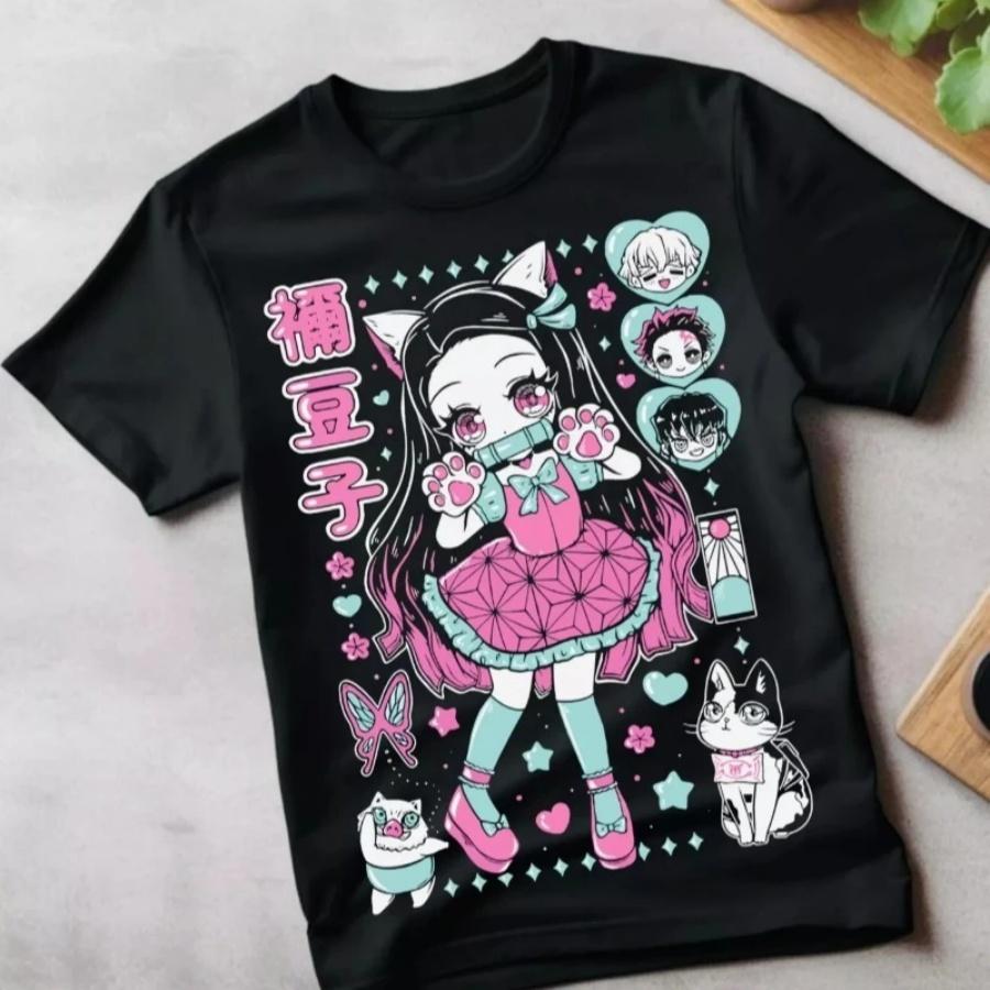 Nezuko T-shirt Demon Killer Kimetsu No Yaiba Tanjiro Anime Manga Summer New Men and Women Streetwear