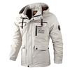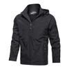 Introducing a versatile men's waterproof jacket designed for outdoor enthusiasts. This military-style windbreaker is ideal for spring and autumn adventures. With a stand neckline and long sleeves, it offers a sleek look while providing comfort. The jacket is crafted from lightweight polyester, ensuring it dries quickly and keeps you dry during unexpected weather. Its solid pattern adds a touch of minimalistic style, making it a practical and fashionable choice for any outdoor activity.