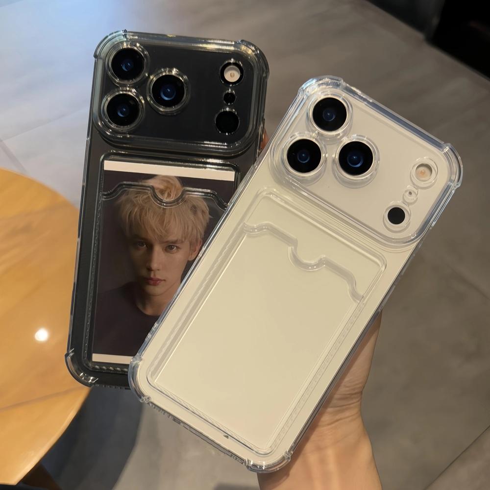 Bolsa Transparente com Porta-Cartão Case Para iPhone 17 16 15 14 13 12 11 Pro Max XS XR 7 8 Plus Carteira Capa de Silicone à Prova de Choque