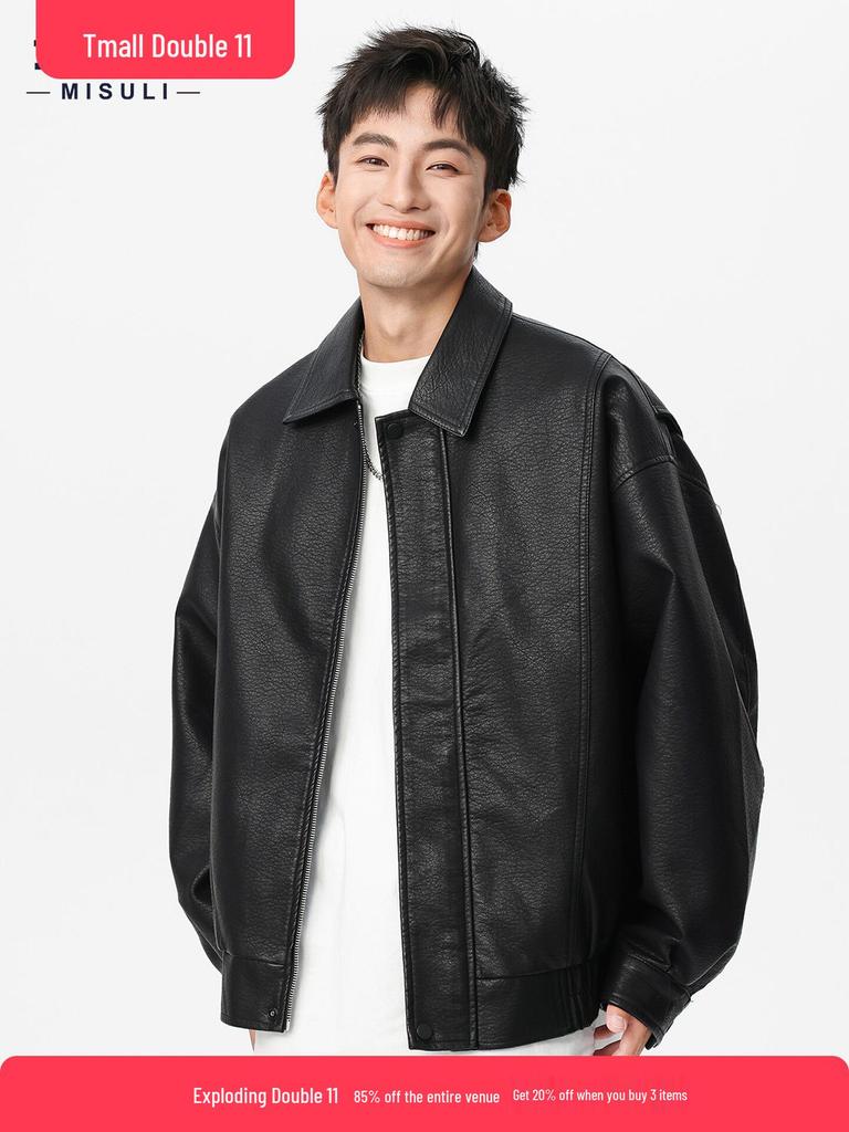 Men's Heavyweight Retro PU Leather Jacket - Autumn Trendy, Simple Loose Black Casual Workwear Outerwear