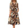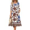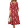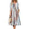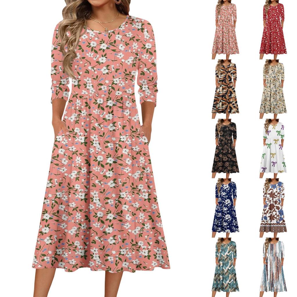 3/4 Sleeve Women's Dress Casual Flowy A-Line Midi Tshirt Dresses With Pockets Crewneck Vocation Boho Beach Sundress