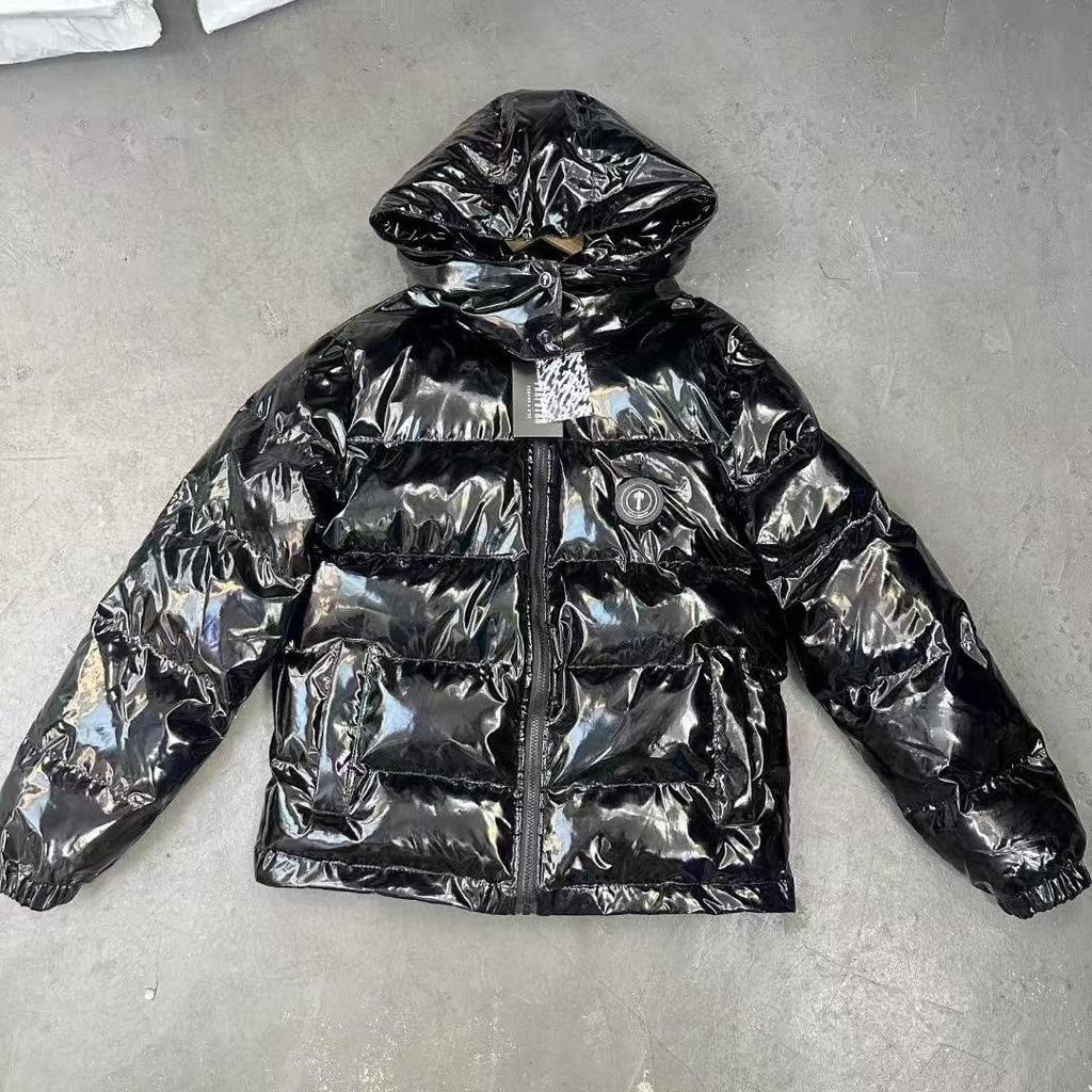 Jaqueta de Algodão Espessa Trapstar Preta Brilhante com Capuz Removível - Roupa Exterior para Casal