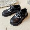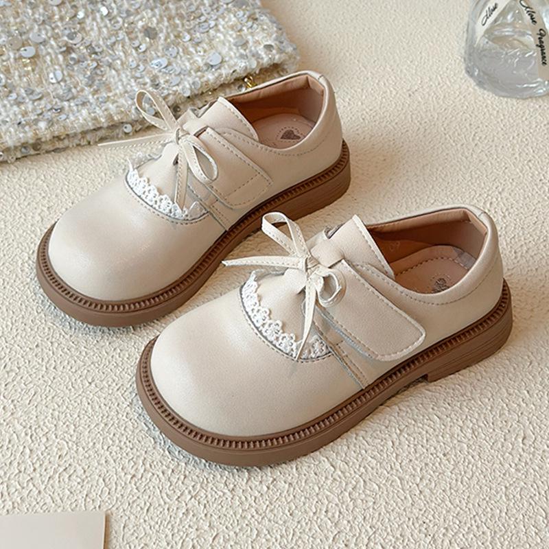 Sapatos de Princesa com Laço de Couro para Meninas com Sola Macia e Acabamento em Renda para Primavera e Outono