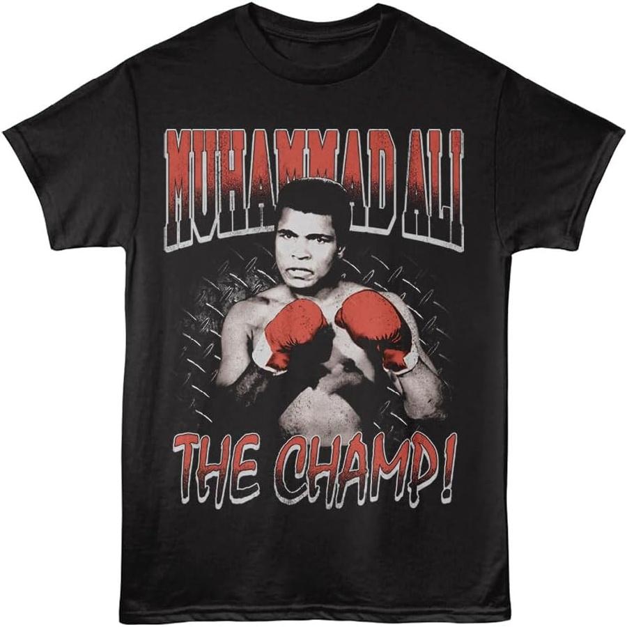 Muhammad Ali Champion Front & Back Print Black Graphic Crew Neck, Short Sleeve Tee - Vintage Style T Shirt for Men & Women