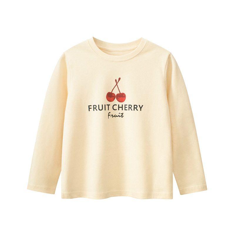 Trendy Children's Clothing Korean Style Long-Sleeve T-Shirt for Older Kids, Autumn Girls' Pure Cotton Base Shirt with Cherry Print Ins