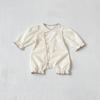 2026 Infant Waffle Lantern Sleeve Romper - Baby Girl Spring Outfit with Single-Breasted Design and Diaper Cover
