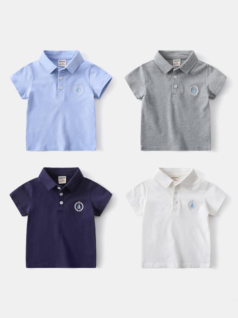 Polo de Manga Curta Estilo Coreano para Crianças - Camiseta de Algodão de Verão para Meninos