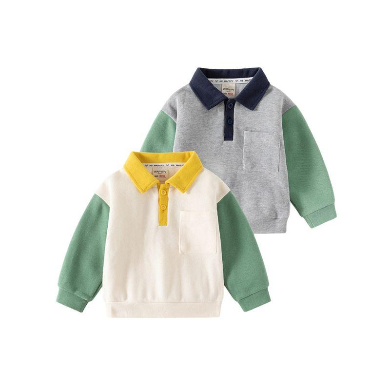 Kids Lapel Sweater Spring and Autumn Children's Clothing Boy's Square Collar Pocket Top K-style Baby Boy's Polo Shirt Pullover